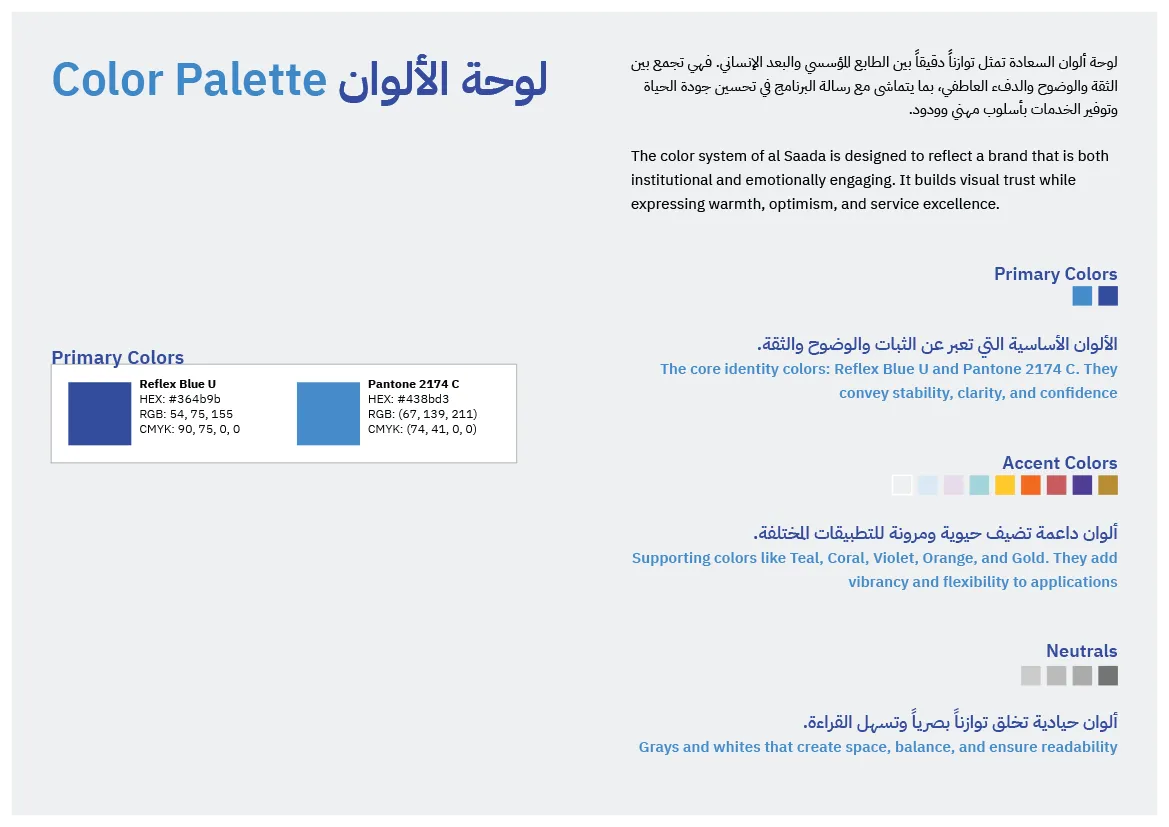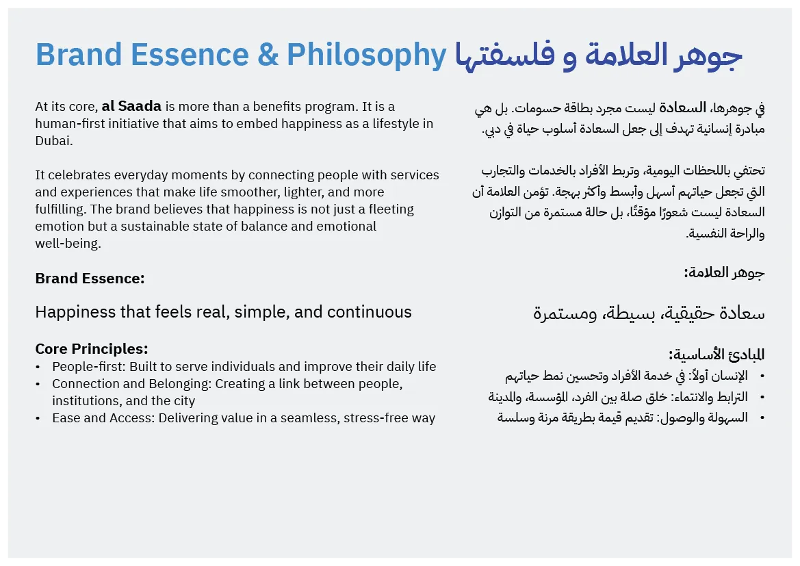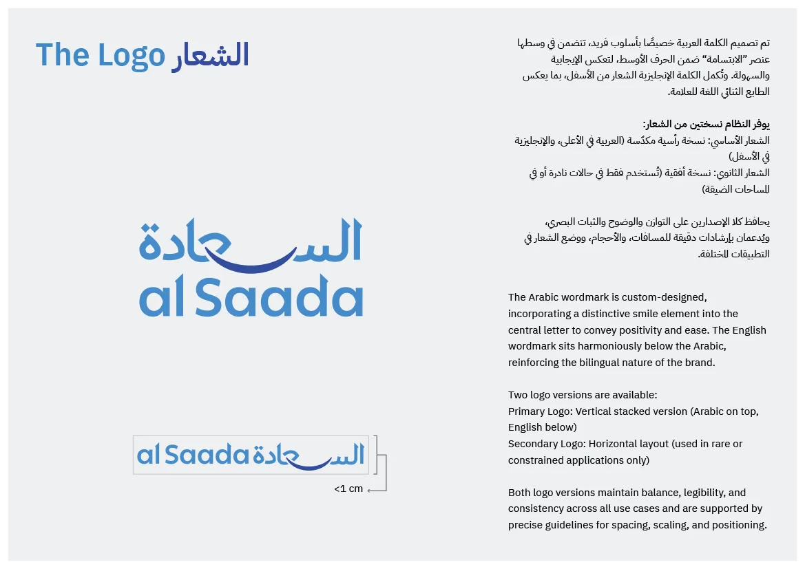 The rebranding of al Saada resulted in a more mature, cohesive, and future-ready identity that: