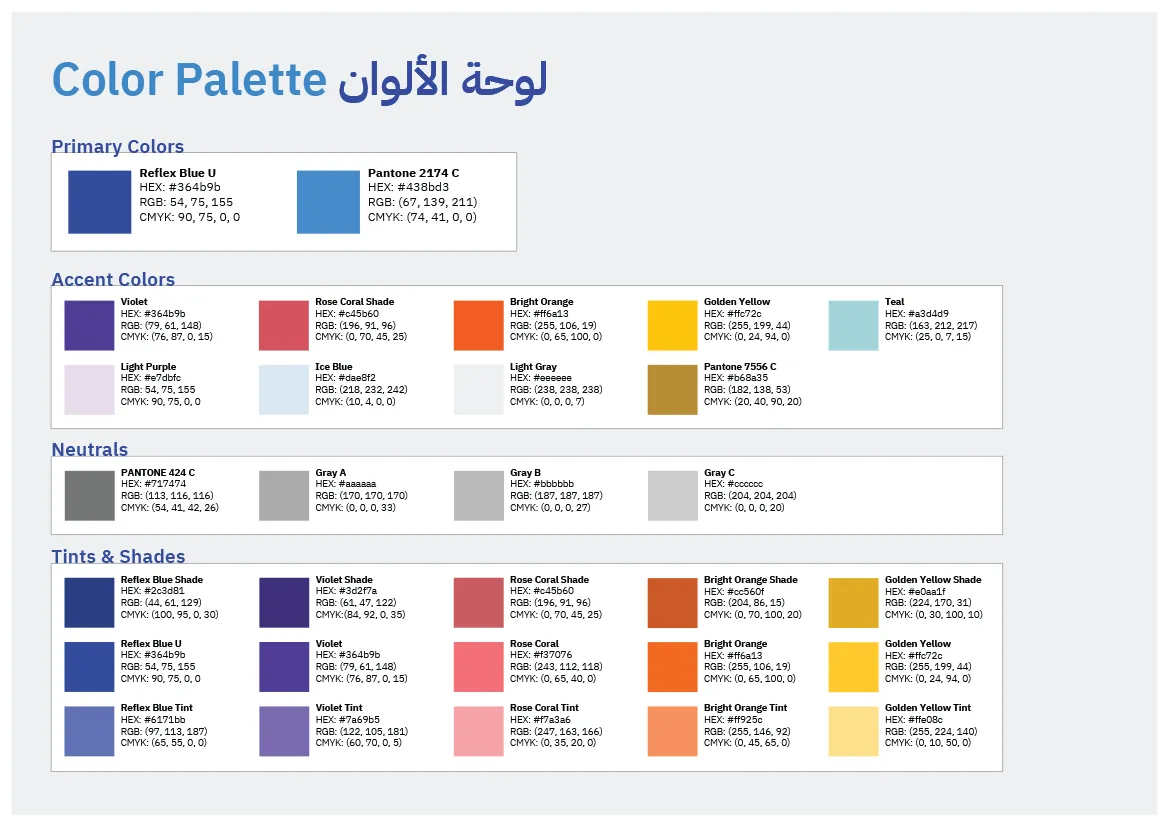 The English logotype was custom-adjusted to visually align with the Arabic form in proportion, rhythm, and weight.
