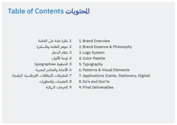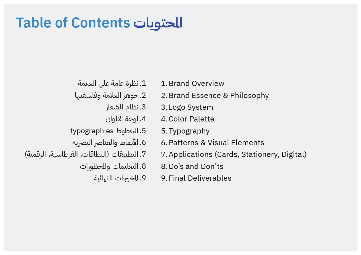 Brand strategy, Arabic logotype design, visual system development, and brand application.