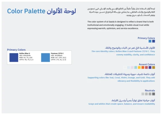 Challenge: Refresh the visual identity of al Saada, a government social program, without disrupting public recognition or institutional credibility. The brand needed to evolve visually while remaining familiar, authoritative, and culturally grounded, with strong Arabic-first presence and long-term scalability across digital and physical touchpoints.
